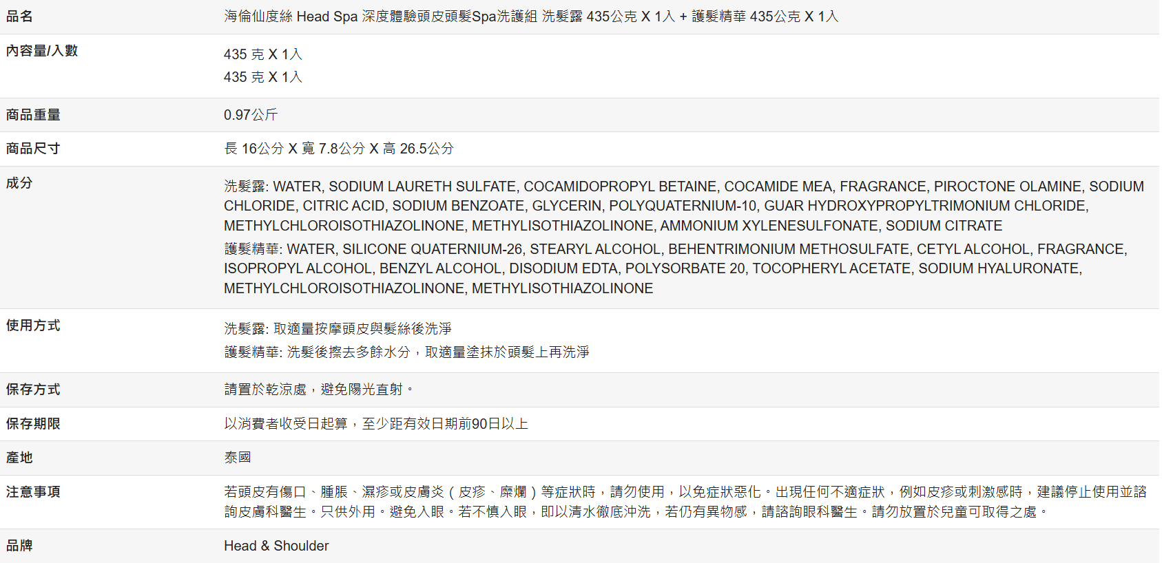【好市多代購】海倫仙度絲Head Spa深度體驗頭皮頭髮Spa洗護組 洗髮露 435公克X1入+護髮精華435公克X1
