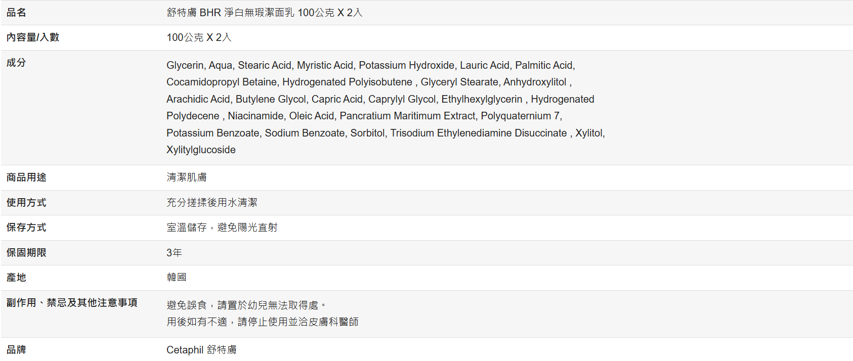 【好市多代購】舒特膚 BHR 淨白無瑕潔面乳 100公克 X 2入