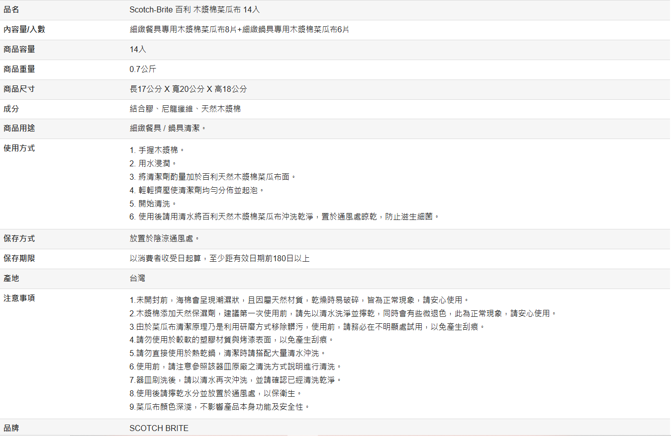 【好市多代購】Scotch-Brite 百利 木漿棉菜瓜布 14入