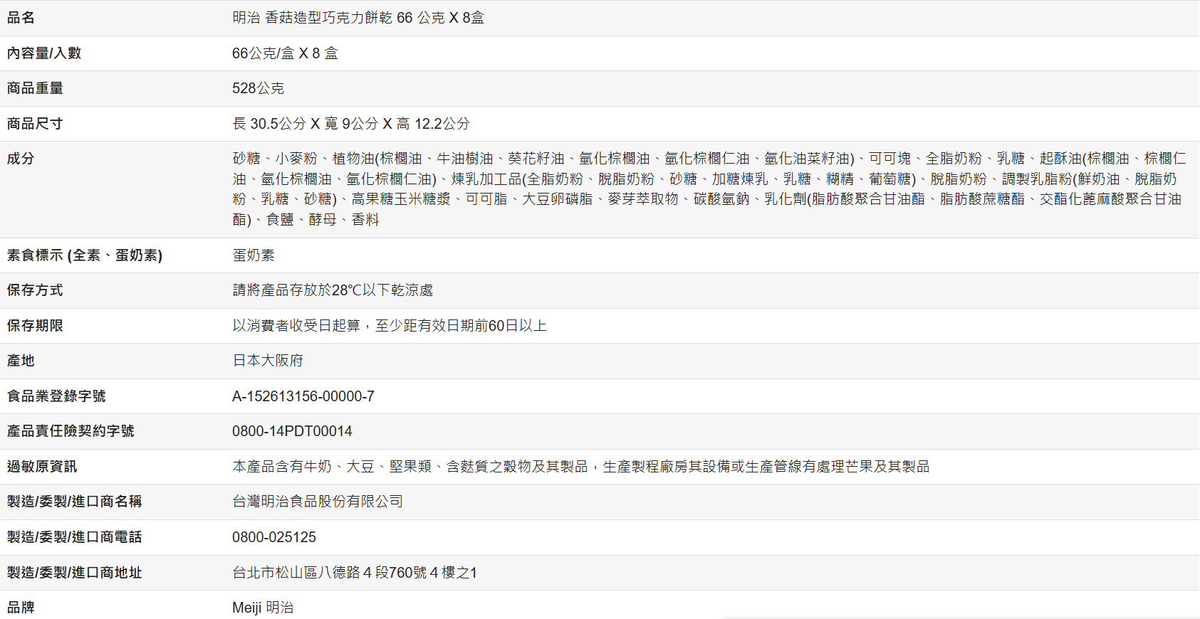 【好市多代購】明治 香菇造型巧克力餅乾 66 公克 X 8盒