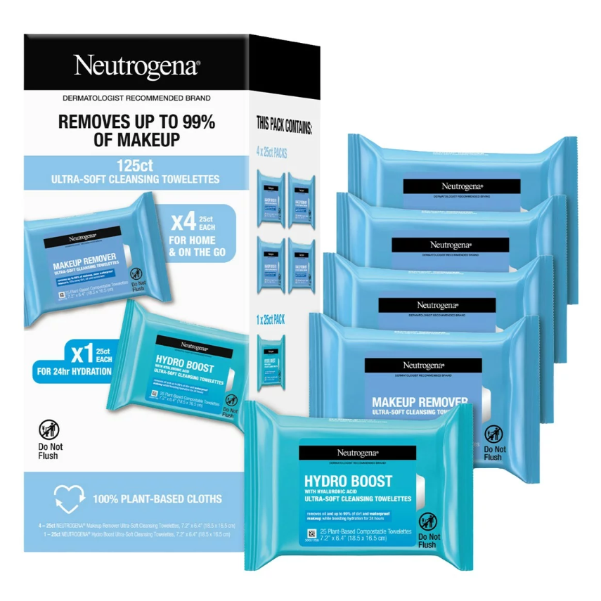 【好市多代購】露得清 柔軟潔面巾組 卸妝棉 25張 X 4入 & 玻尿酸保濕棉 25張 X 1入
