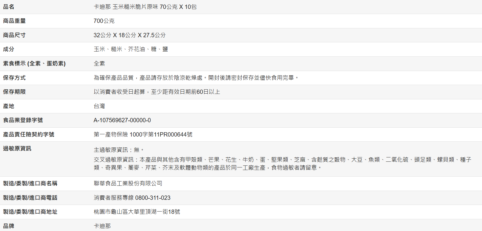• 非油炸、無防腐劑、無麩質