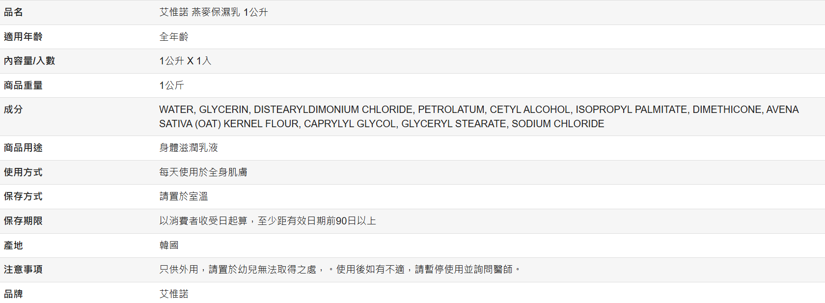 【好市多代購】艾惟諾 燕麥保濕乳 1公升