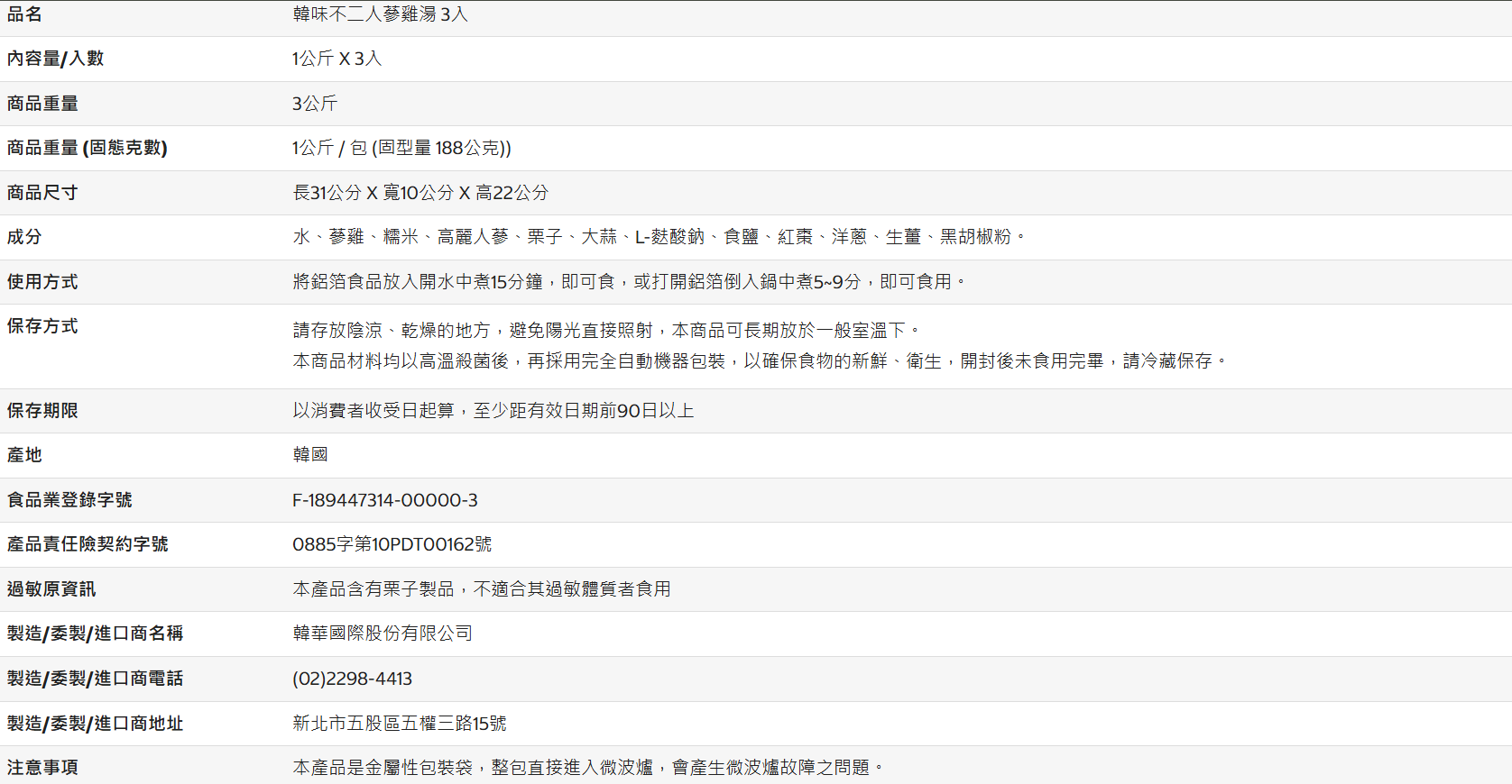 【好市多代購】韓味不二 人蔘雞湯 3入