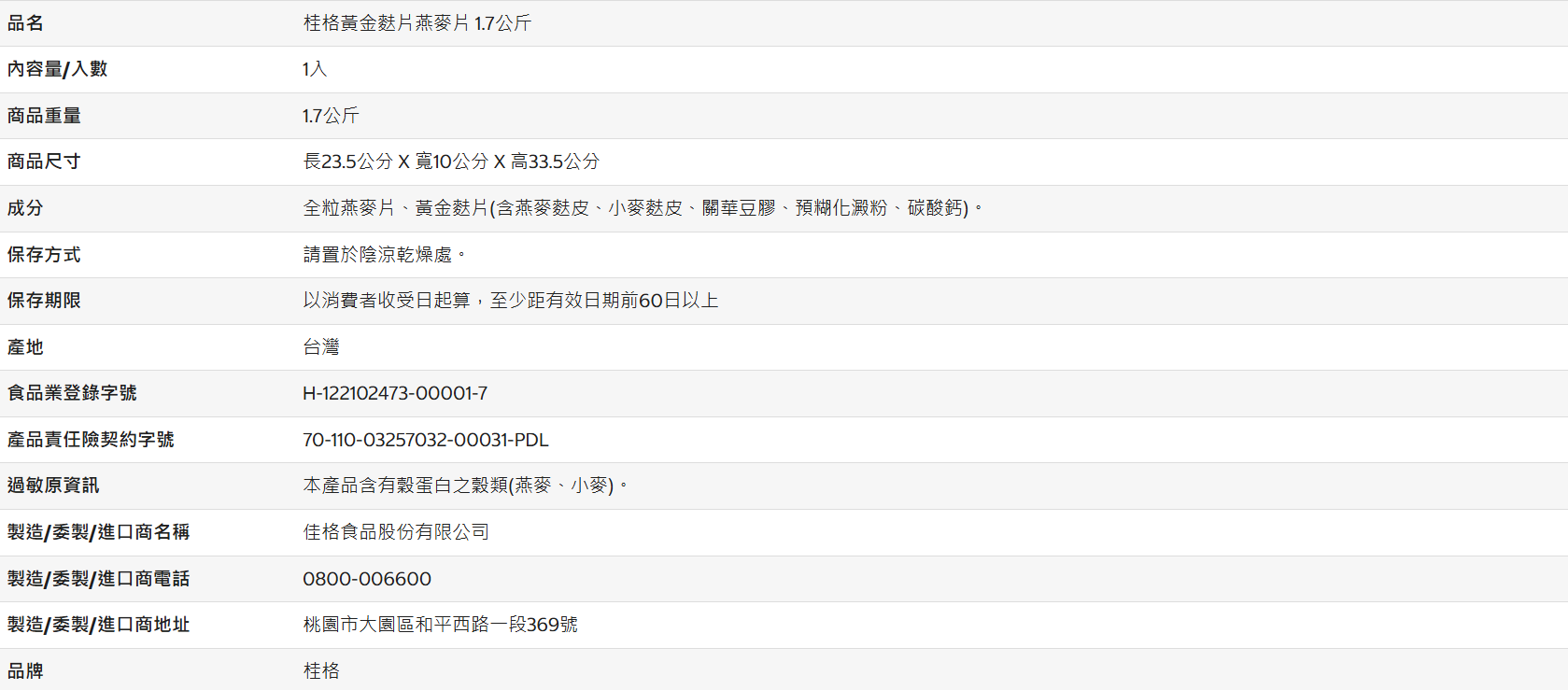 •  100%澳洲進口燕麥,台灣製造。