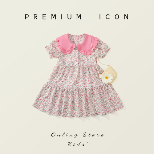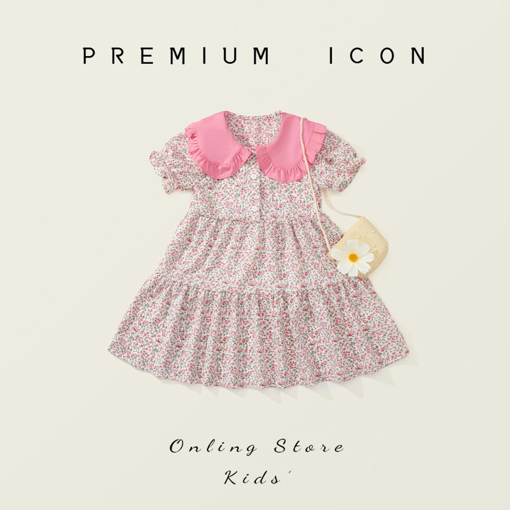 女童碎花連衣裙2024夏季新款韓版森系田園風寶寶洋氣童裙送包包