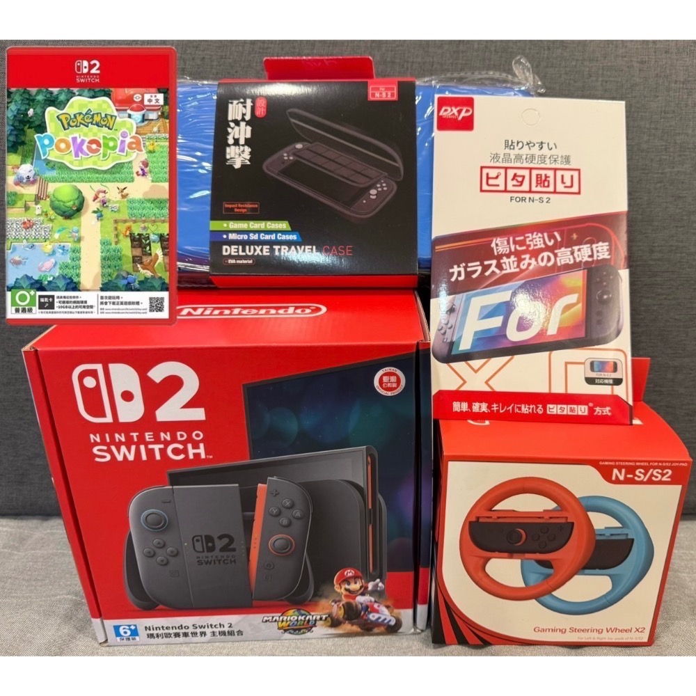 Switch2瑪利歐賽車世界遊戲及主機同捆組合+ 寶可夢百變怪Pokemon Pokopia遊戲片+ NS2方向盤*1組+ 螢幕保護貼*1+ 主機收納保護包(全新未拆封臺灣公司貨,原廠保固一年)/原價 19660 元,優惠賣17080元