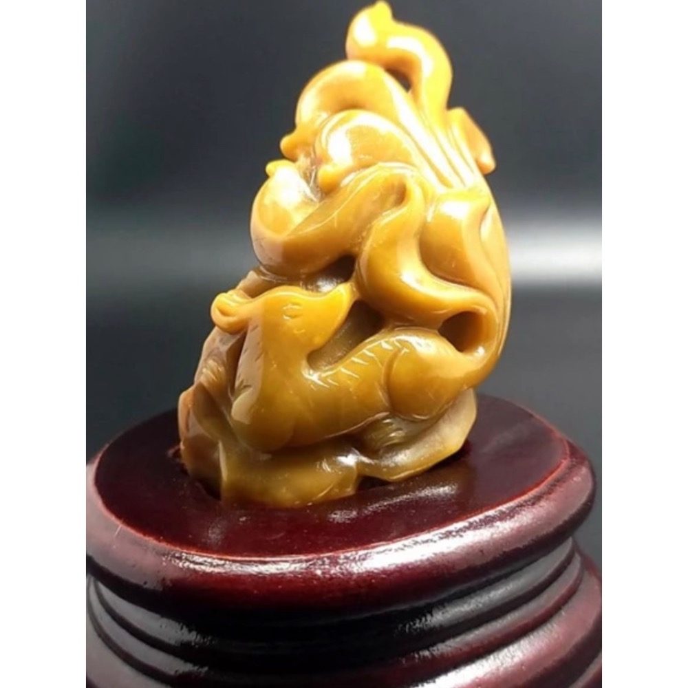 🌈現貨實拍 手工雕刻天然黃兔毛九尾狐擺件