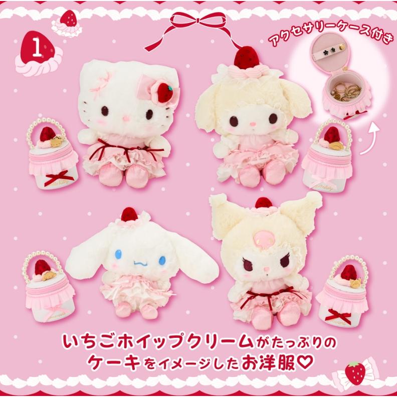 都是秒殺的狀態 在台現貨~ 都是娃娃+項鍊吊飾組合 套裝包含一個毛絨玩具和一個飾品收納盒,是饋贈佳品。 毛絨玩具的服裝設計靈感來自草莓奶油蛋糕。 飾品收納盒配有方便的腰帶,可用於存放戒指和耳環。 本賣場商品皆為全新日本購回,絕對正品。 多數商品皆為親飛帶回,少部分商品為小幫手代購。 往返日本頻率約一個月一趟,歡迎各位一同加入連線!!