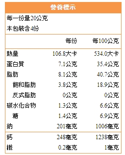 產品成分:乳酪、鹽、糖