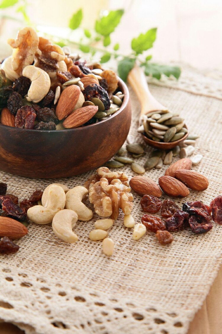堅果富含維生素E,不飽和脂肪酸,果乾富含維生素C及纖維。