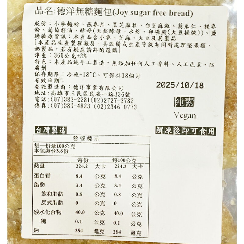 注意事項:本產品含小麥、芝麻、大豆及其製品