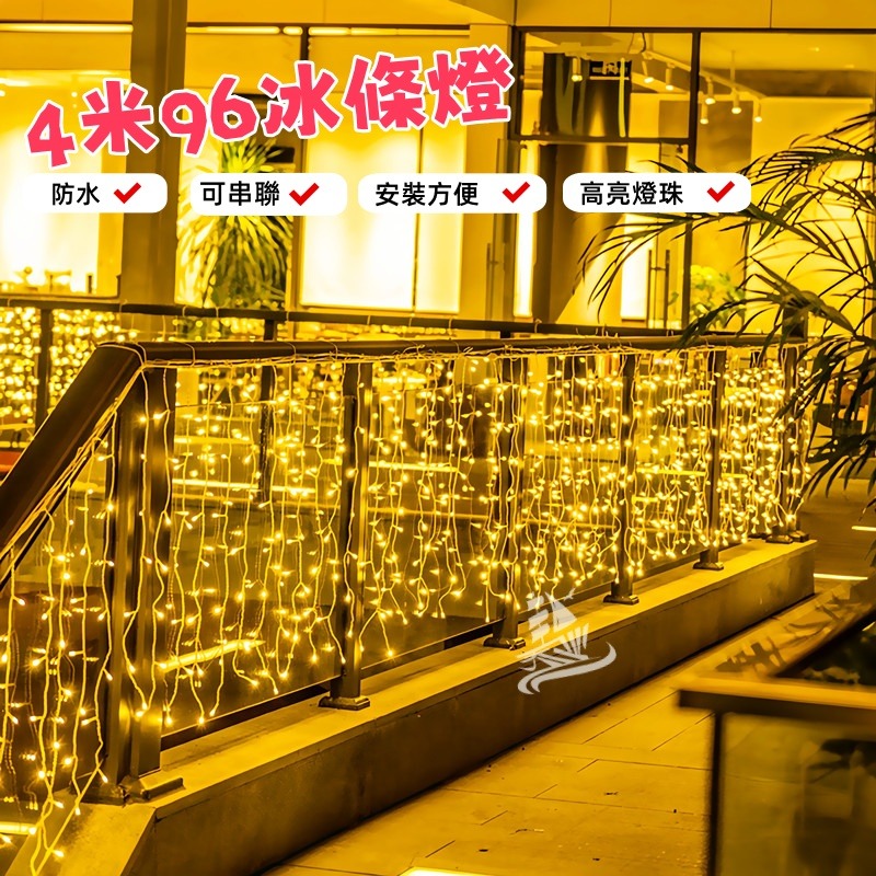 【產品規格】4公尺96燈 下掛波浪形,公母接口可串接