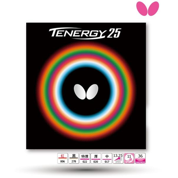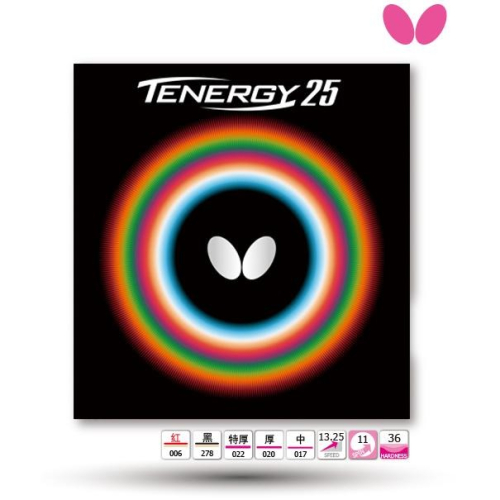 全新正品蝴蝶Butterfly Tenergy 25 高彈性海綿[Spring Sponge]和能量內藏技術相結合而產生的具有獨特擊球感的套膠。