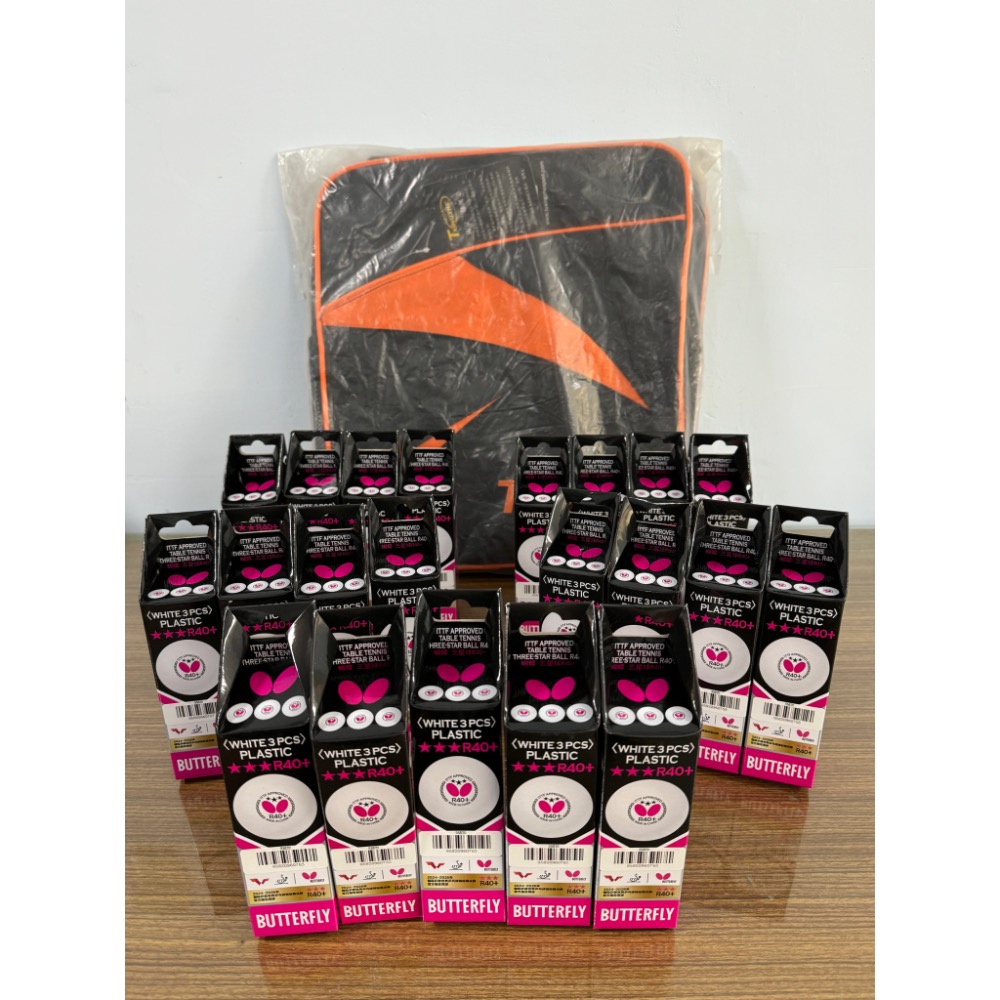 全新正品Butterfly蝴蝶R40+三星球~(一盒3顆裝),一次購買20盒,加送途行者桌球專用單肩包(大型~顏色隨機)