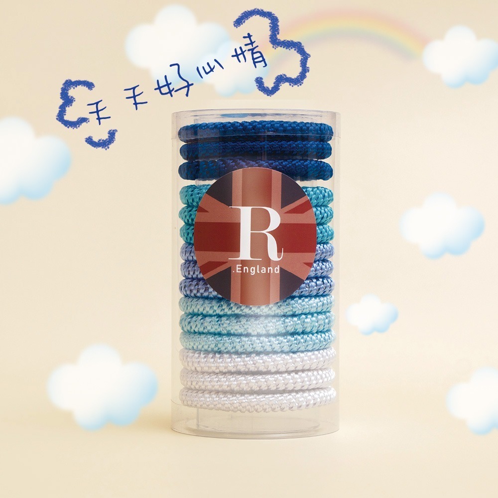 【R.England 皇家髮圈】 粗版 彈力髮圈髮束15入 (沁藍海洋)-不易鬆 不咬髮 彈性強 送10條黑色髮圈