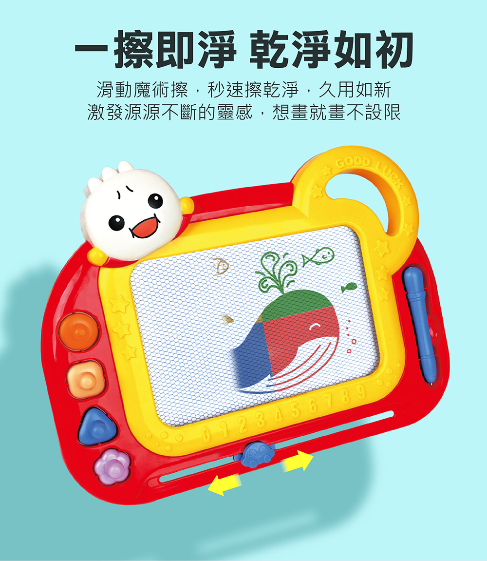 推即可清除畫板內容,無需紙張,讓孩子可以無限次重複繪畫,環保又實用。