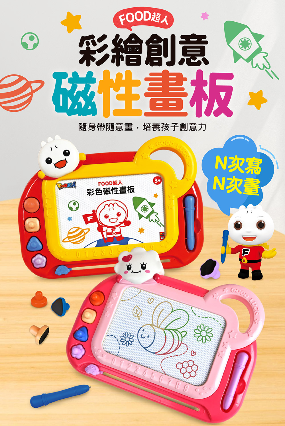 便攜式設計讓孩子隨時隨地發揮創意,塗塗寫寫中無限延展他們的想像力。