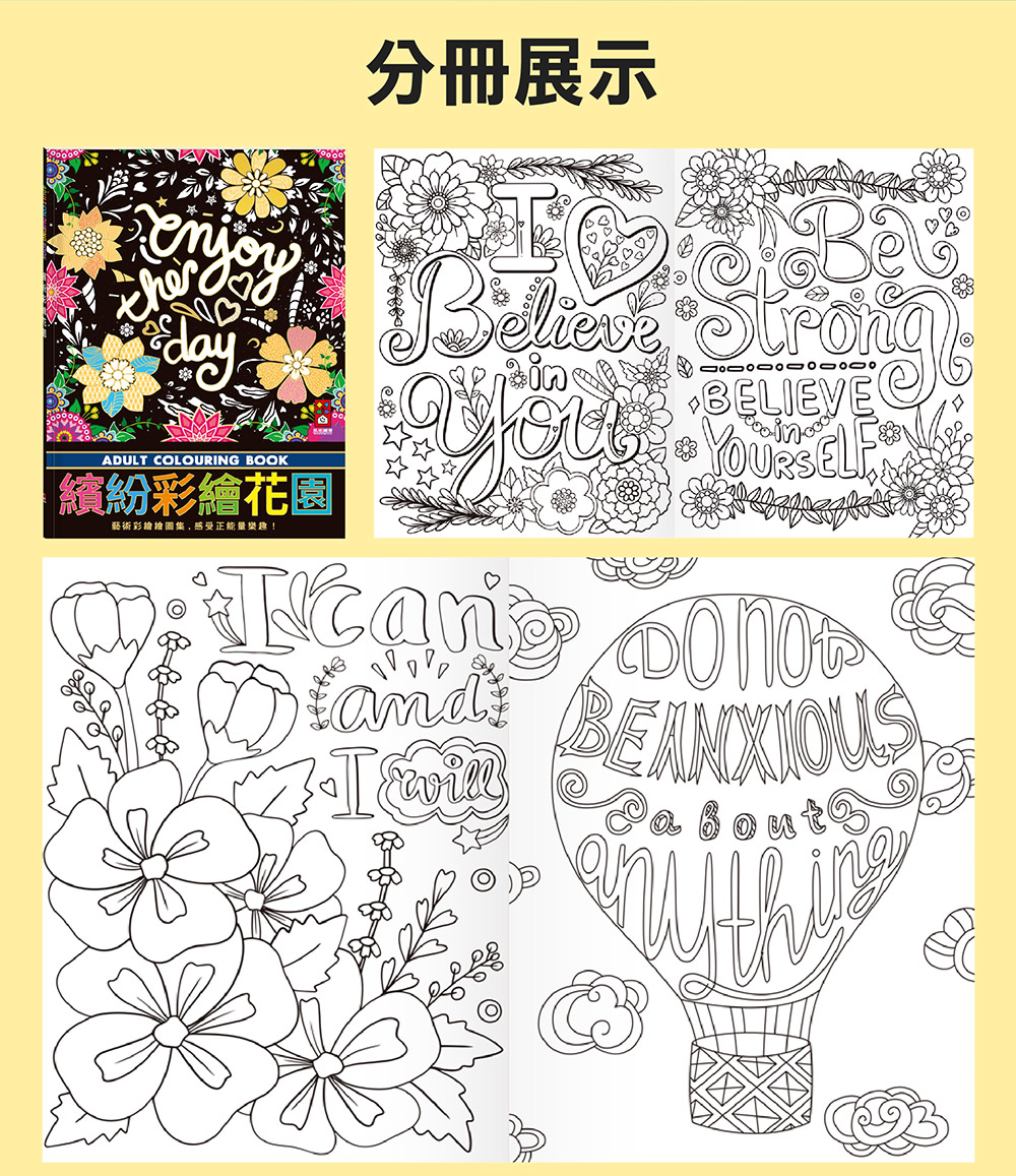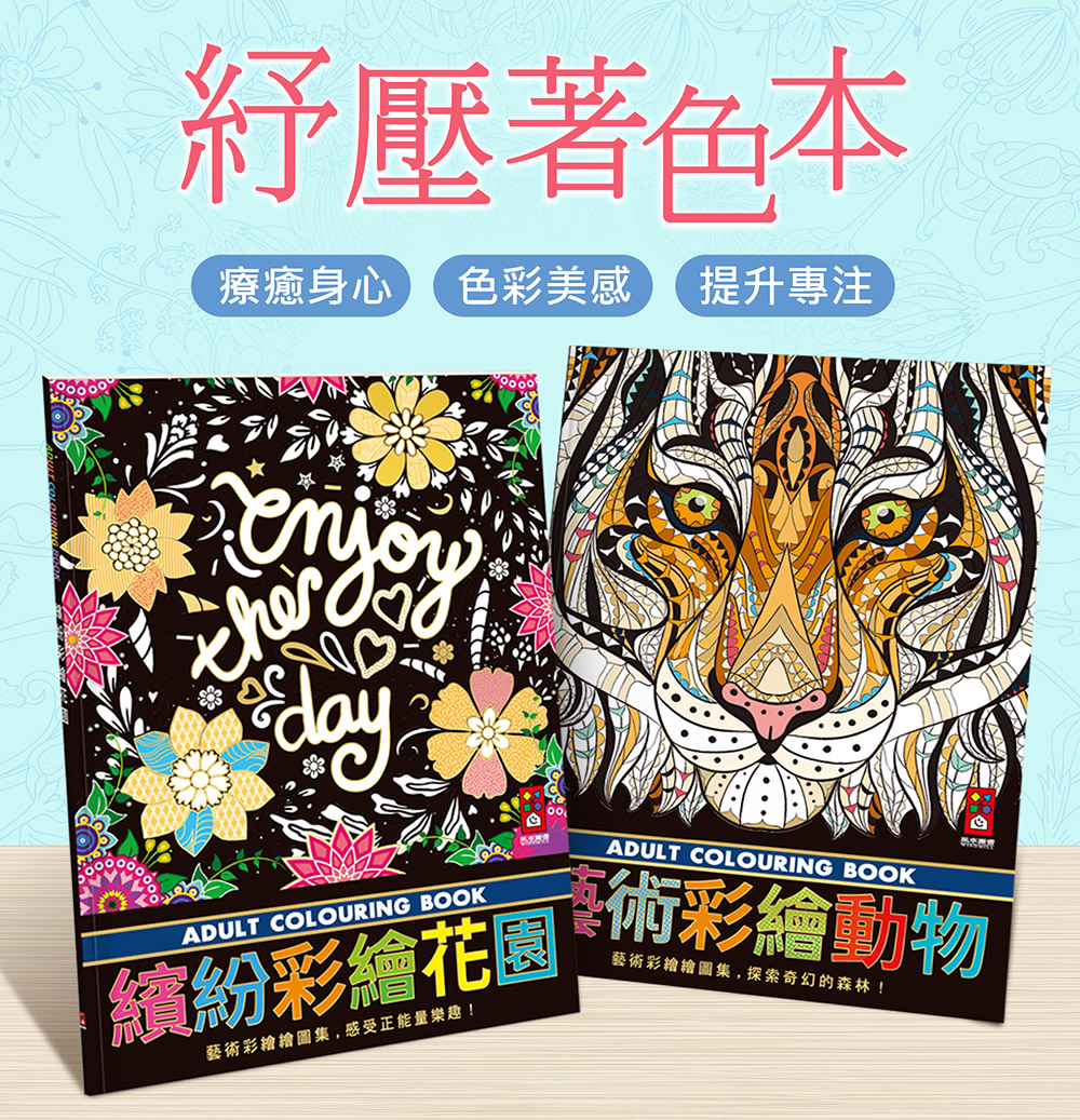 著色本不僅能揮灑創意,同時也能培養藝術美感、療癒心情,抒發壓力,大人、小孩都適用。