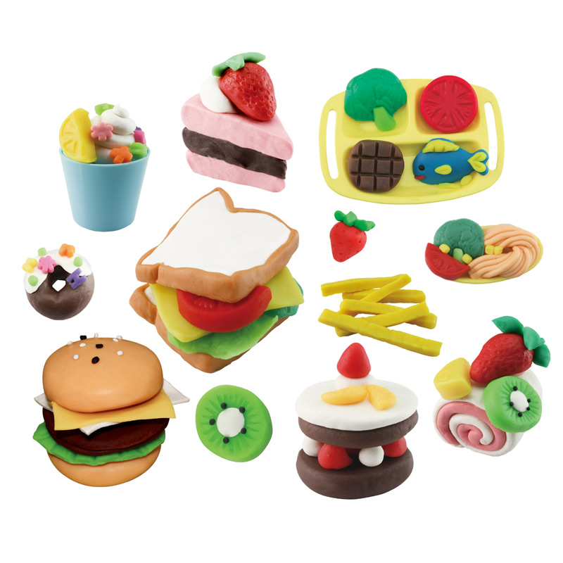 黏土是最適合培養孩童豐富想像力的遊戲。使用工具做出草莓、土司、蛋糕等美味食物,配合下午茶遊戲圖,跟朋友一起分享點心吧!