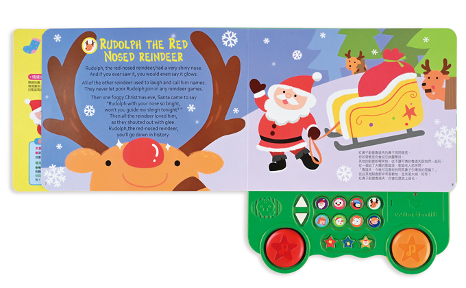 朗朗上口的旋律以及簡單的歌詞,以標準美式英文發音,讓孩子歡唱聖誕歌謠,輕鬆學英文。