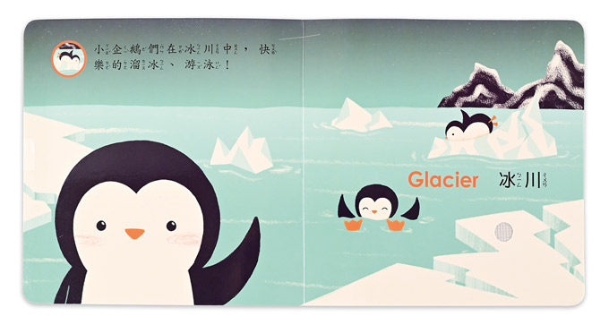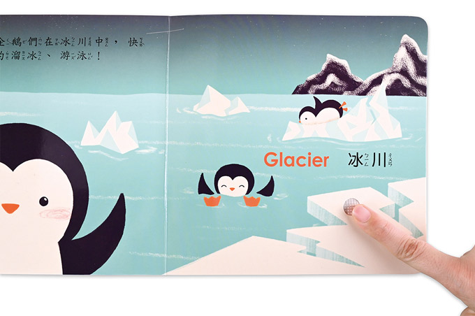 本書利用手指點讀設計,每一頁都有不同的自然景觀介紹,搭配可愛動物繪圖主題,不僅讓孩子認識各種自然景觀、環境的認知,也可以讓孩子認識各種可愛的動物,使閱讀充滿趣味與驚喜!