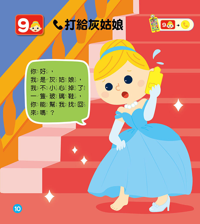 輕輕滑動下方機關,可轉換「對話/故事」模式,處於對話模式時,可以打電話給12位最知名的童話人物,讓孩子發揮想像力,跟童話人物談天說地,增進語言發展。