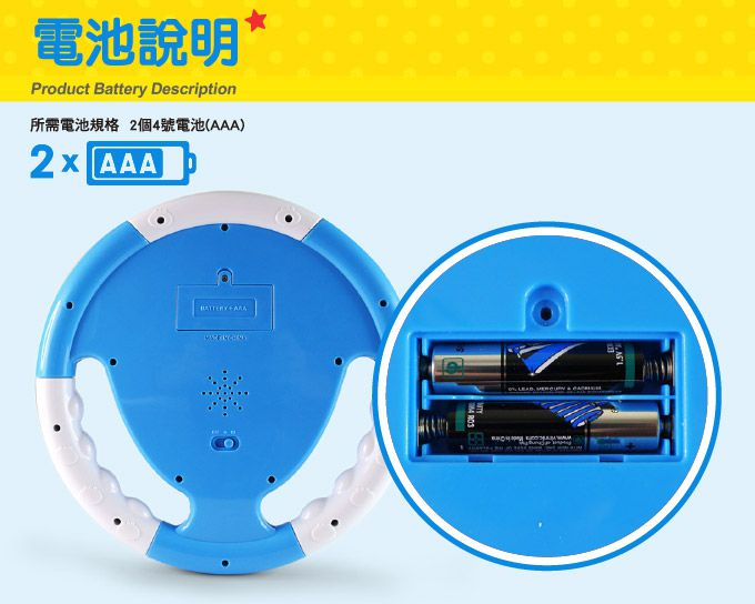 內容物:藍色汽車方向盤1個、鑰匙1個、全景圖一組、AAA電池*2