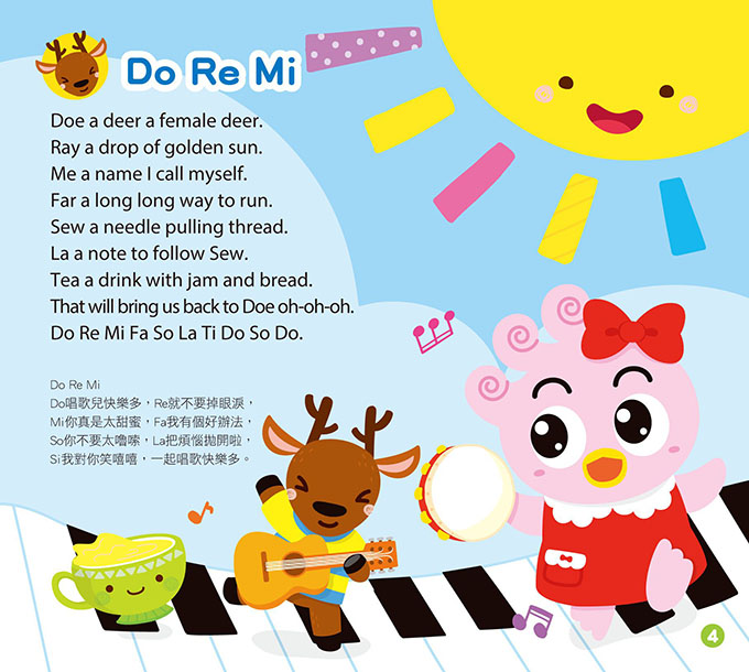 色彩鮮明、搭配歌曲情境的可愛插圖繪本,附上完整中英文歌詞。
