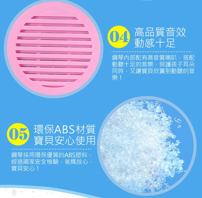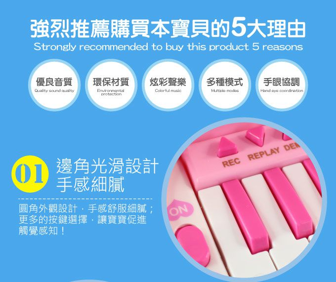 DO RE MI音階準確,三種不同的鋼琴音效及三種伴奏,帶來更多趣味,逐漸培養孩子的音樂素養,提升EQ及IQ能力。