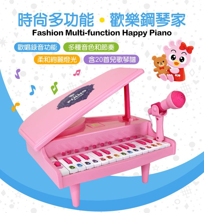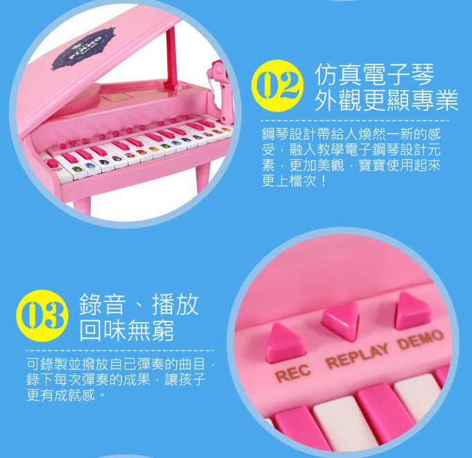 內容物:小鋼琴(不含電池)/麥克風/鋼琴腳架/音名貼紙/鋼琴譜