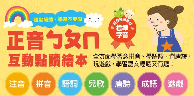採用小學國語課本標準讀音,適合當學習拼音的輔助教材。