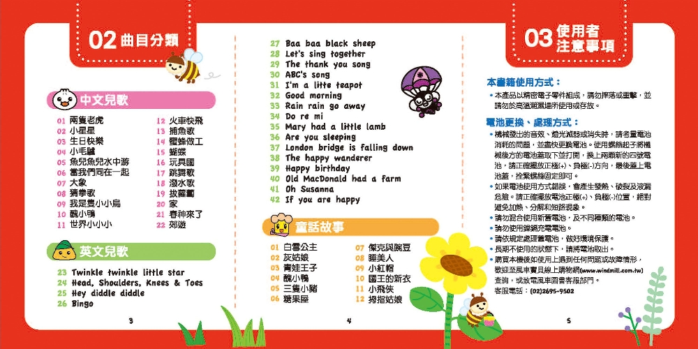 2. 容易操作:分類清楚,童話、兒歌兩大分類按鍵隨選隨聽。