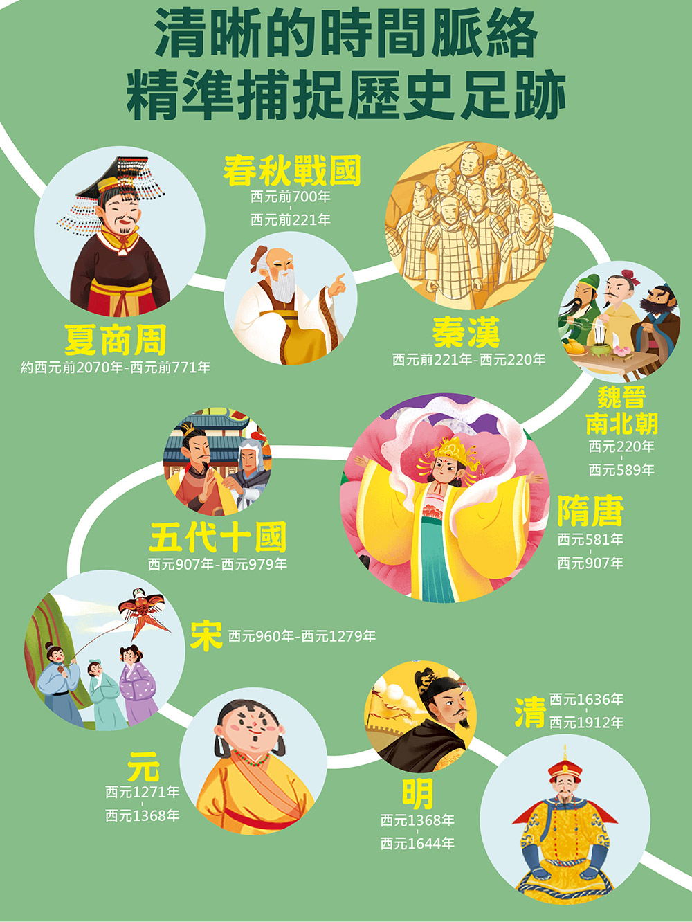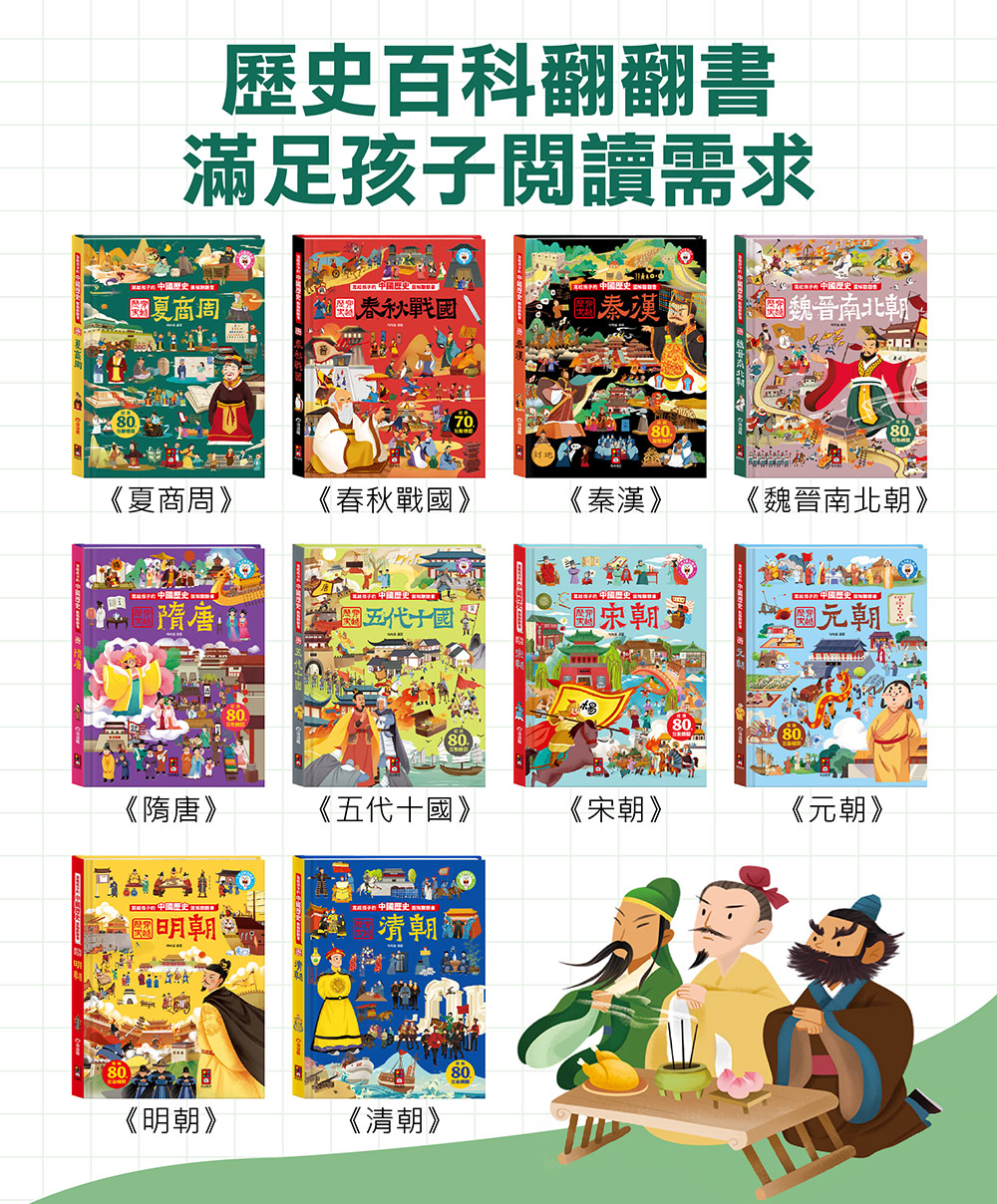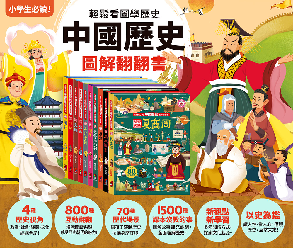 有趣的翻翻頁面,激發孩子探索與閱讀慾望,增添歷史樂趣,感受歷史各個朝代的魅力。