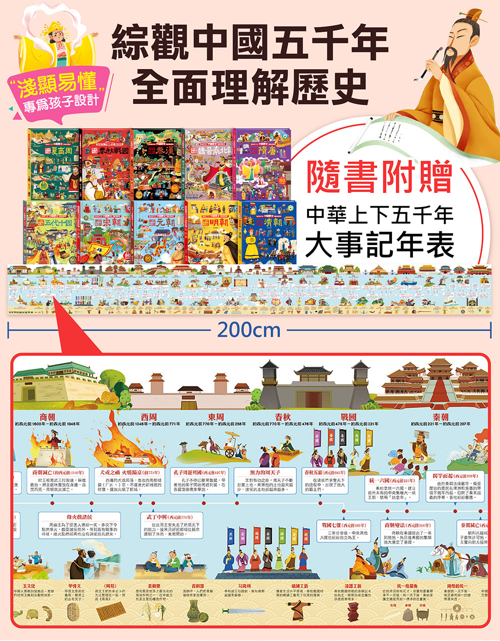 10本翻翻書+1張200cm中華上下五千年大事記年表: