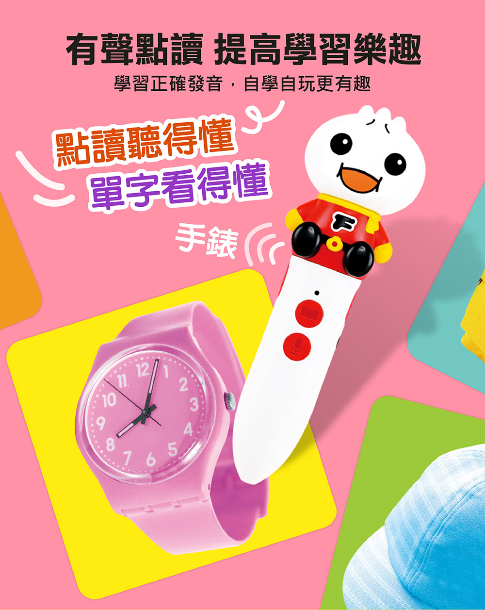 可支援FOOD超人多重點讀筆,學習正確發音,能自學自玩,讓圖卡變得更有趣!