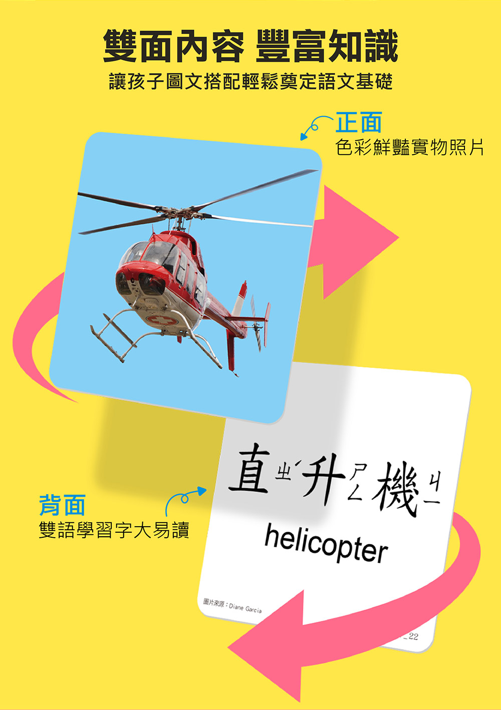 ★正面圖片、背面中英文雙語名稱,讓孩子搭配圖文輕鬆學認知。