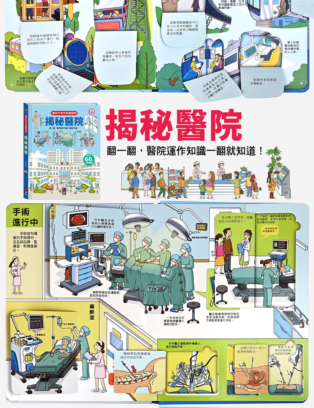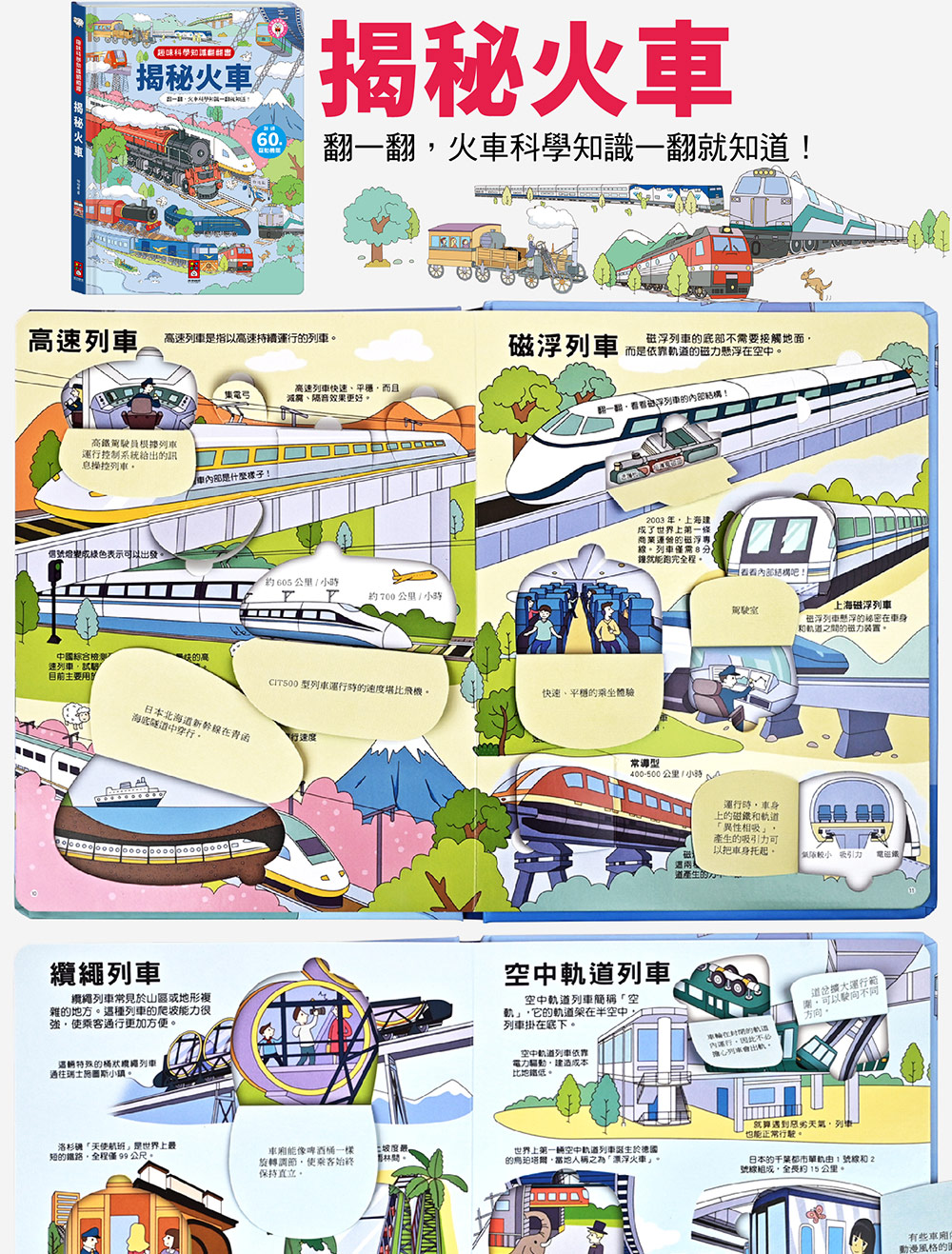 每頁都有不同的翻翻機關,每次翻開都有不同驚喜知識,讓孩子能更全面性的理解火車。