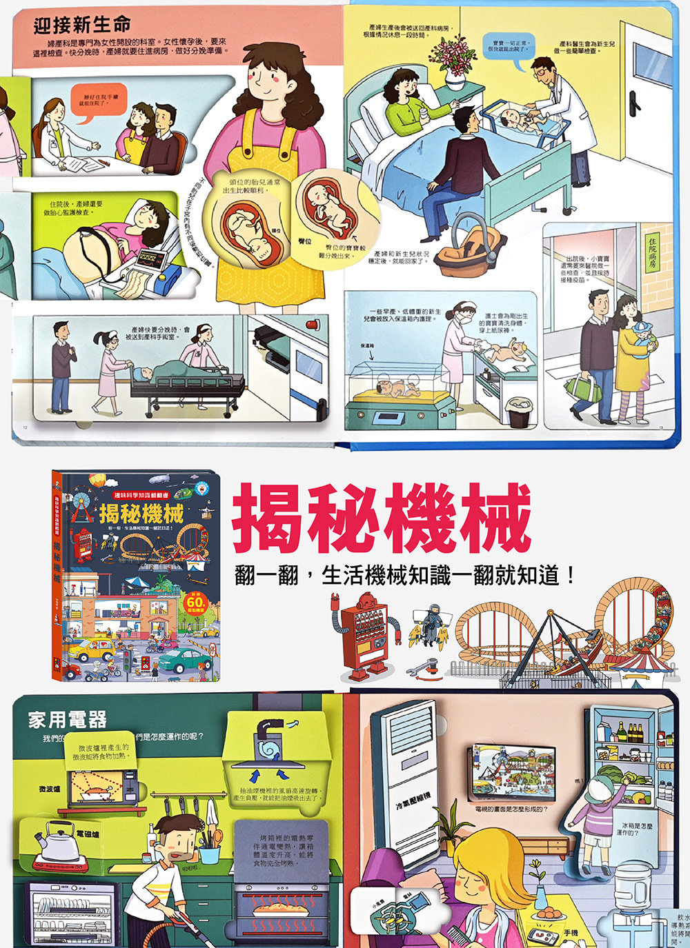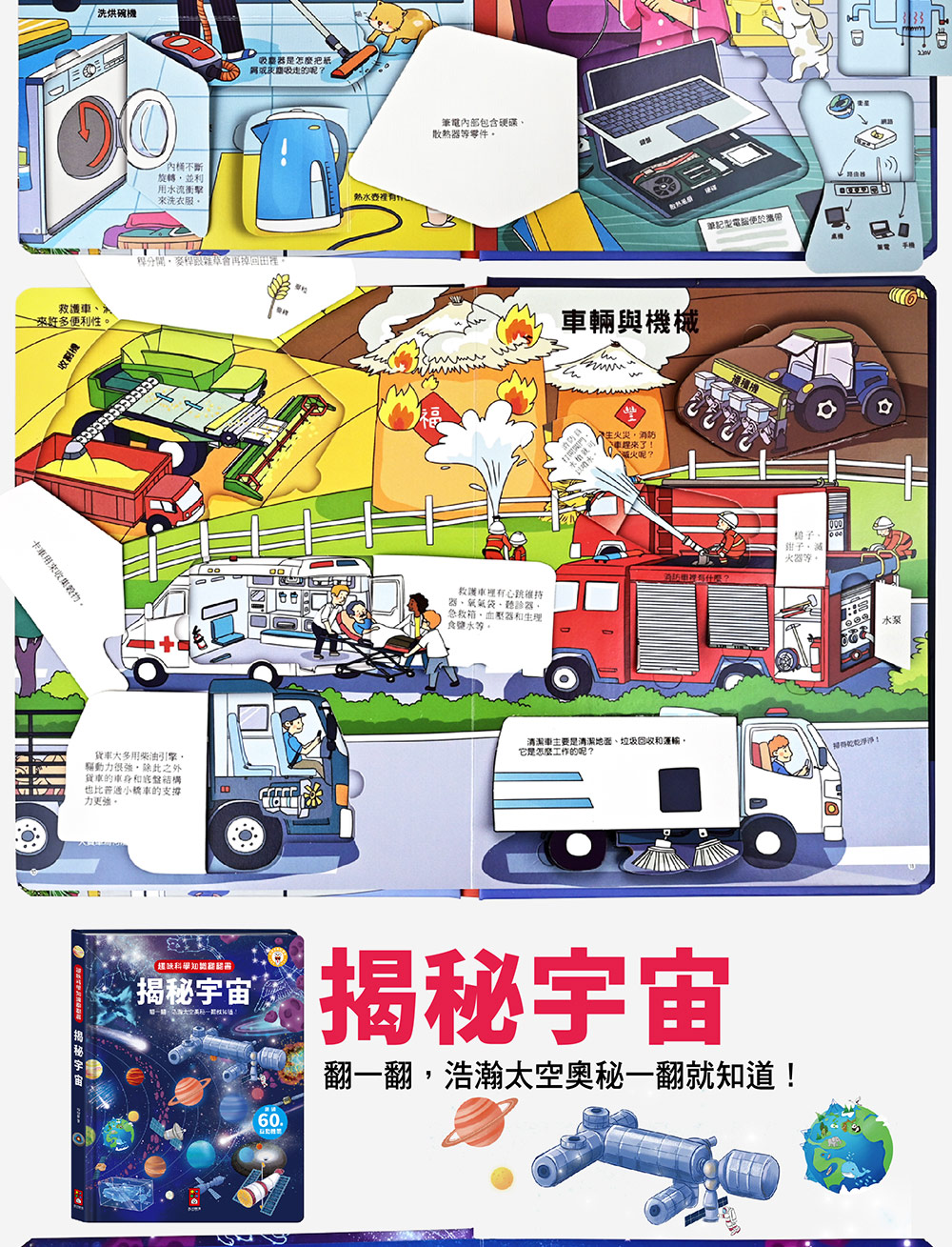 《趣味科學知識翻翻書》收錄各種不同主題,每本含有多種翻翻頁面機關,翻開來立刻解答疑問,帶領孩子們進入科學的世界,開啟奇妙的科普探索之旅。