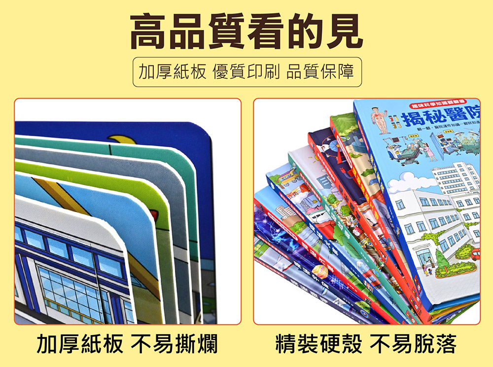 本書採用厚紙+四邊圓角設計,讓低幼齡孩童也能輕鬆閱讀,一起體會探索世界科學的樂趣。