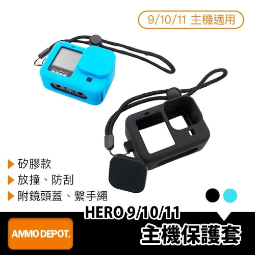 【彈藥庫】GoPro HERO 13/12/11/10/9 矽膠保護套 含手繩(黑/藍)#DFG-C053