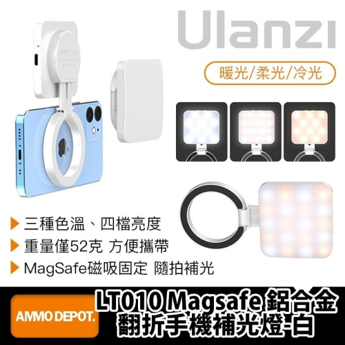 【彈藥庫】Ulanzi LT010 Magsafe 鋁合金翻折手機補光燈-白 #Ulanzi-3045