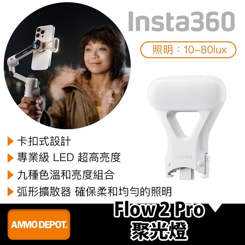 本賣場為 Insta360 Flow 2 Pro 聚光燈 #CINSBBQB 賣場,不包含其他配件,拍照商品僅供參考。