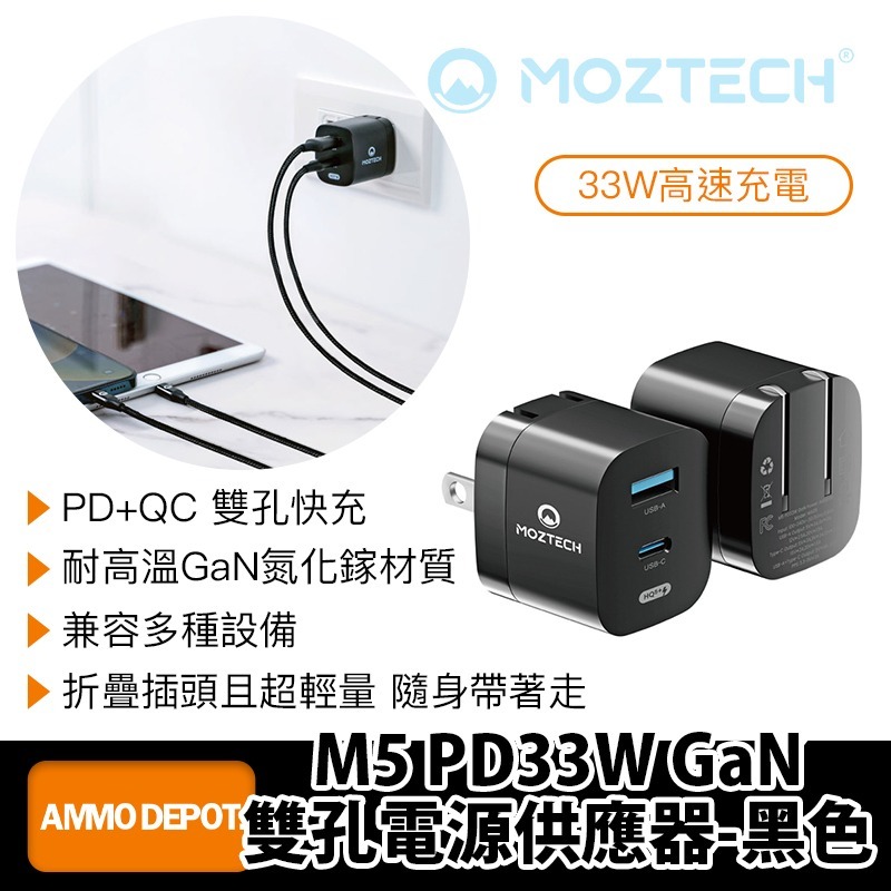 MOZTECH M5 PD33W GaN雙孔電源供應器-黑色 #MA05-BK