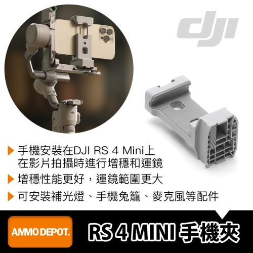 本賣場為 DJI RS 4 MINI 手機夾 賣場,不包含其他配件,拍照商品僅供參考。