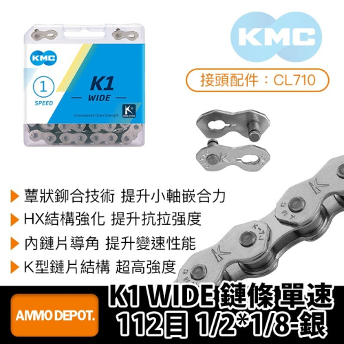 KMC K1 WIDE 鏈條 單速 112目 1/2*1/8-銀 #1716A-19K1 WIDE-NPNP
