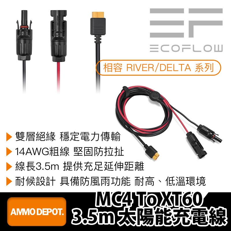 本賣場為 ECOFLOW MC4 To XT60 Cable of 3.5m 太陽能充電線 賣場,不包含其他配件,拍照商品僅供參考。
