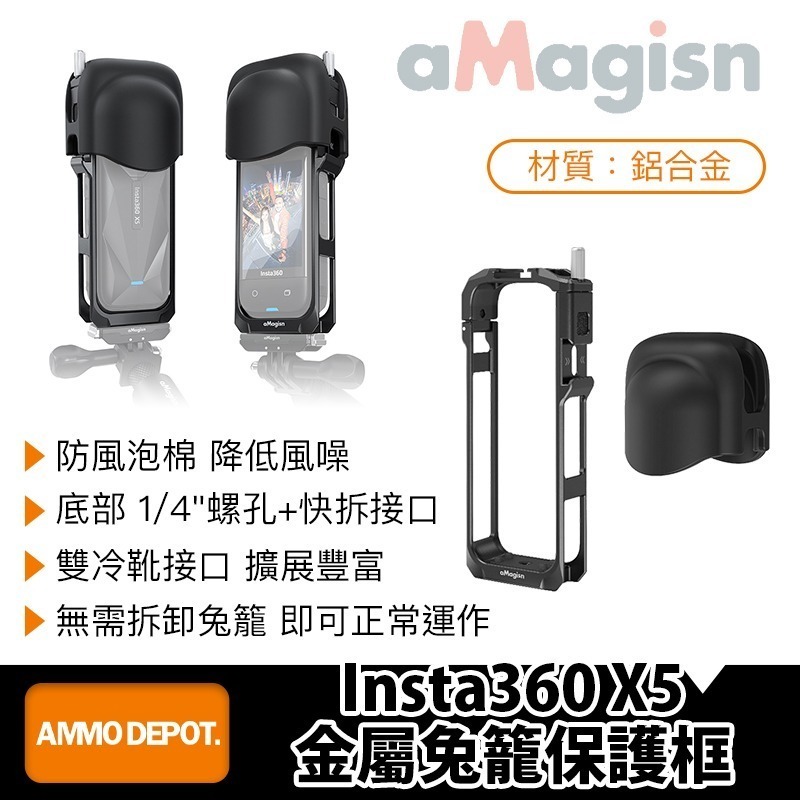 本賣場為 aMagisn Insta360 X5 金屬兔籠保護框 #PF01 賣場,不包含其他配件,拍照商品僅供參考。