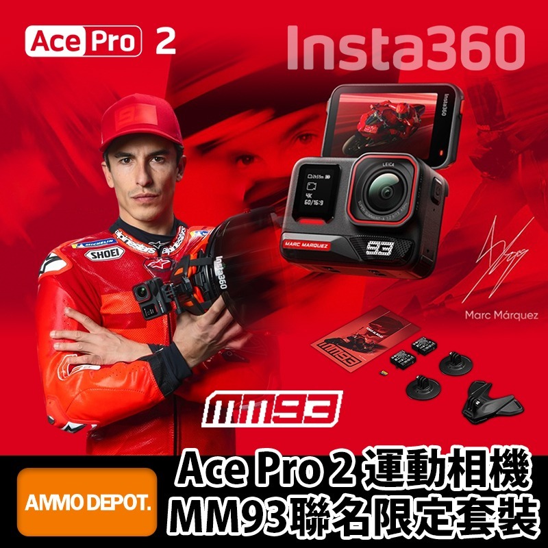 本賣場為 Insta360 x MM93 Ace Pro 2 運動相機 Marc Márquez 冠軍聯名限定套裝 #CINSBBGA ACEPRO272 賣場,不包含其他配件,拍照商品僅供參考。