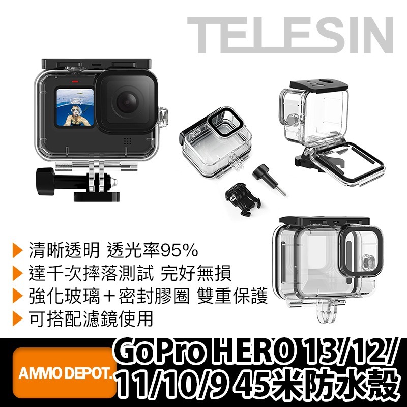 TELESIN GoPro HERO 13/12/11/10/9 45米防水殼 #GP-WTP-901